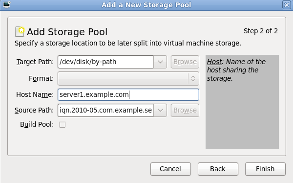 /var/lib/libvirt/images/ folder. If you use a different directory you must add the directory to the SELinux policy. Refer to Section 16.2, “SELinux and virtualization” for details.