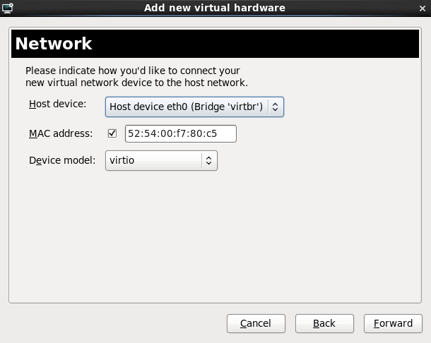 e1000) driver is also supported as an emulated driver choice. To use the e1000 driver, replace virtio in the procedure below with e1000. For the best performance it is recommended to use the virtio driver.